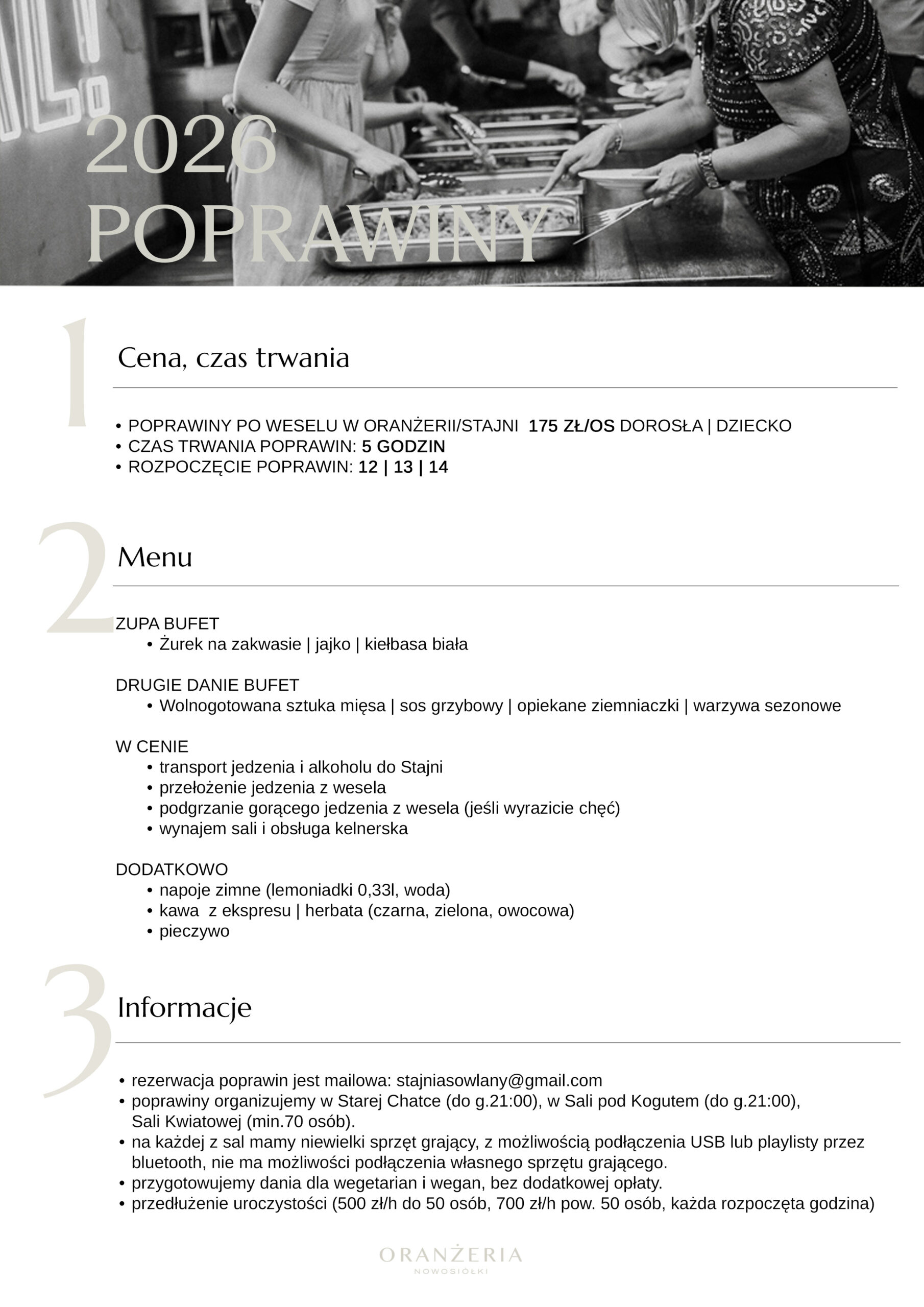 Oranżeria Nowosiółki to piękna, nieograniczona przestrzeń, położona nad półhektarowym stawem, otulona lasem i śpiewem ptaków. Przestronne, otwarte wnętrza, wykończone naturalnymi materiałami w towarzystwie dużej ilości roślin wewnątrz, sprawią, że każda zaplanowana tu uroczystość, będzie dla Was wyjątkowa.